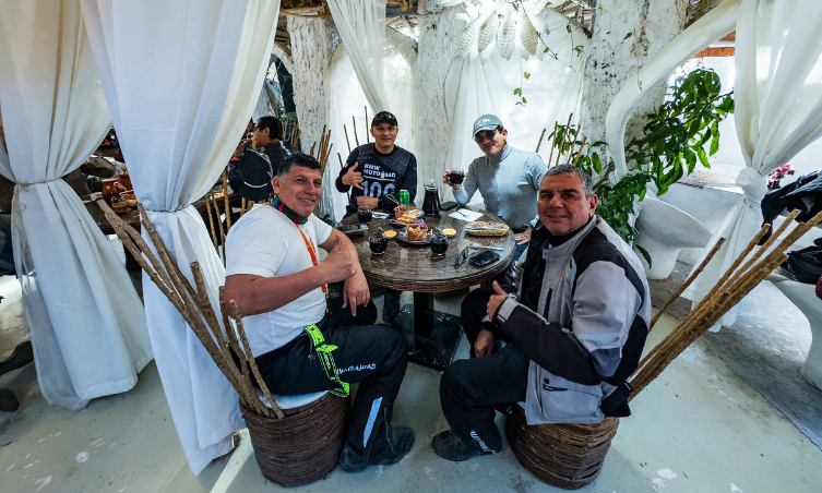 Esta acción solidaria fue un gesto significativo que demostró el compromiso del club no solo con la aventura, sino también con generar un impacto positivo en las localidades que visitan. La alegría de los niños y el agradecimiento de las familias de la comunidad hicieron de este momento uno de los más emotivos del viaje, reforzando los valores de empatía y humanidad que forman parte de la esencia del club. Tras recorrer los terrenos de este lugar lleno de simbolismo, los participantes disfrutaron de un almuerzo en el restaurante Limacos, conocido por su diseño que fusiona elegancia y naturaleza. Rodeado de paisajes andinos, este espacio ofrece una experiencia culinaria única que combina sabores locales con un ambiente tranquilo y acogedor.