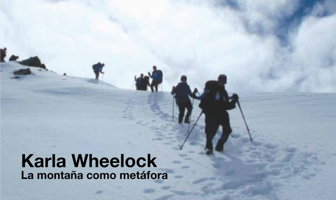 Para Karla Wheelock, la experiencia del montañismo, o más precisamente de la montaña, como ella lo expresa, es una parábola de la vida, de los desafíos, riesgos, esfuerzos y vínculos